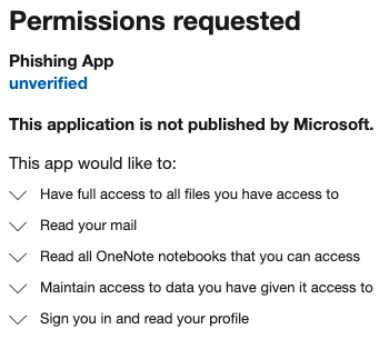 - If the phised user is an some admin that can consent any app with any permissions, the application could also request privileged permissions