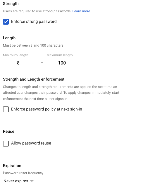 - Enforce strong passwords