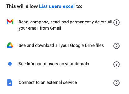 Permissions requested to execute the App Script: