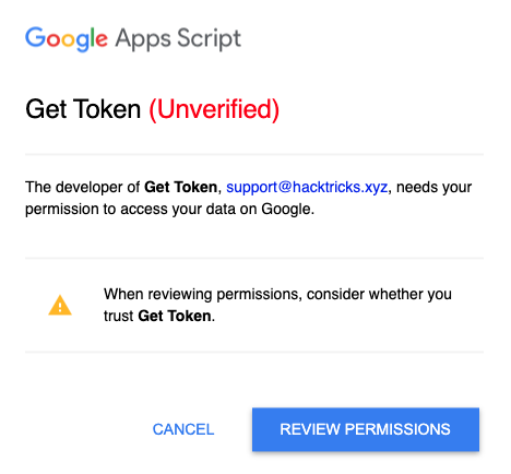[!TIP] If an attacker modifies the scopes of the App Script the updates won't be applied to the document until a new trigger with the changes is created. Therefore, an attacker won't be able to steal the owners creator token with more scopes than the one he set in the trigger he created.