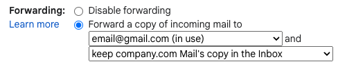 - Then, set to forward all the emails while keeping a copy (remember to click on save changes):