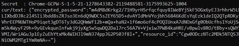 To abuse GCPW to recover the clear text of the password it's possible to dump the encrypted password from LSASS using mimikatz:
